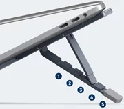 The stand offers 5-position adjustment, allowing the position of the laptop to be adapted to the individual user's needs. This helps to reduce tension on the cervical spine and improve working comfort.