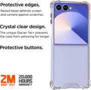 Drop ProtectionThe Eiger Glacier Case has been designed and tested to withstand drops from 2m (6.6 feet), and the raised bezel edges help protect your display.Crystal Clear ProtectionThe unique Glacier Tec+ prevents the case from yellowing for longer and protects your device from scratches. Together with independ