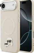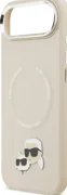The back is decorated with a distinctivemetal pin featuring Karl Lagerfeld and his cat Choupette, giving the accessory a unique, fashionable character. The whole design is complemented byan aluminium camera frame and silver side buttons, highlighting the luxurious character of the product. The MagSafe ring features the"KARL LAGERFELD" inscription, adding elegance and a distinctive style.