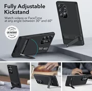 In addition, the case has a built-in stand which, when set at the right angle, functions as a vertical or horizontal tripod.